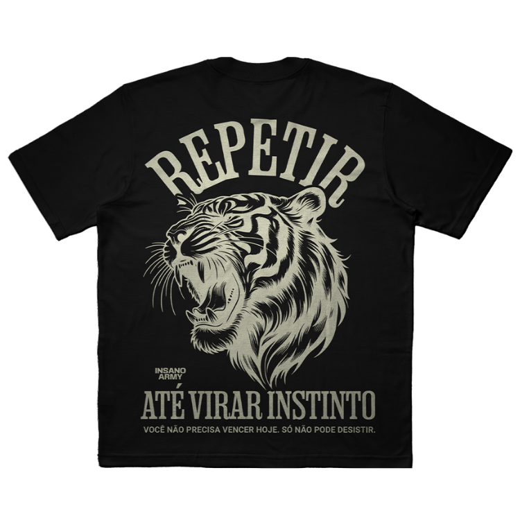 Treinar até que o corpo aja antes da mente pensar. Essa camiseta é pra quem sabe que disciplina não é opção, é hábito — e hábito se constrói repetindo, repetindo, repetindo…