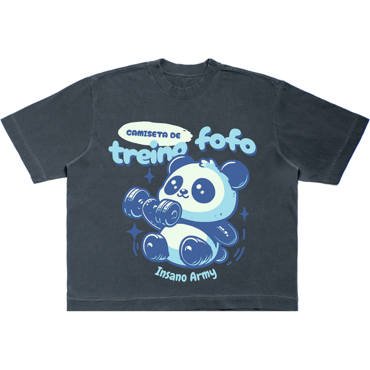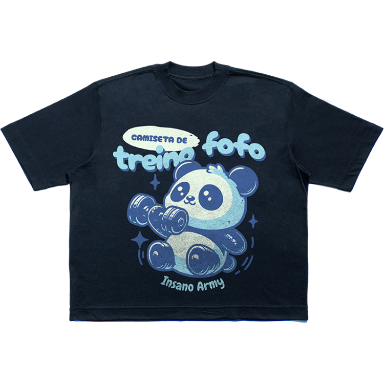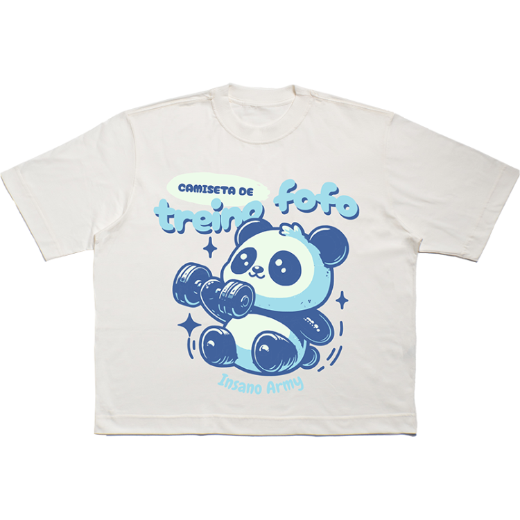Essa versão traz corte Boxy — mais curto e largo — pra dar mobilidade sem parecer pijama. Conforto bruto com malha 100% algodão penteado PREMIUM, fio 26.1 e gramatura de 180g/m². A gola redonda canelada 2×1, com 3 cm, vem com reforço e costura dupla, porque se a batalha é diária, o uniforme tem que durar.